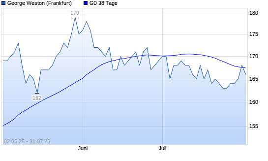 Mit dem Anstieg auf 168,00 EUR hat die George Weston-Aktie am 30.07.2025 die 38-Tage-Linie nach oben gekreuzt.