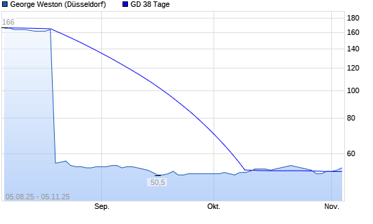 Mit dem Rücksetzer auf 52,00 EUR hat die George Weston-Aktie am 04.11.2025 die 38-Tage-Linie nach unten gekreuzt.