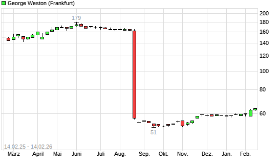 Mit dem Anstieg auf 63,50 EUR hat die George Weston-Aktie (ISIN CA9611485090) am 13.02.2026 ein neues All-Time-High erreicht und damit den Kurs vom 05.02.2026 eingestellt.Die George Weston-Aktie ...weiterlesen