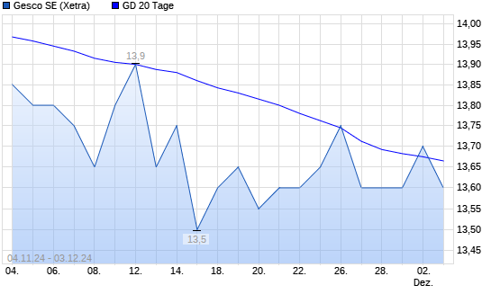 Mit dem Anstieg auf 13,70 EUR hat die Gesco-Aktie am 02.12.2024 die 20-Tage-Linie nach oben gekreuzt.