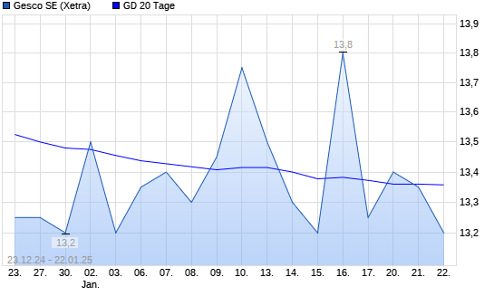 Mit dem Anstieg auf 13,35 EUR hat die Gesco-Aktie am 21.01.2025 die 20-Tage-Linie nach oben gekreuzt.