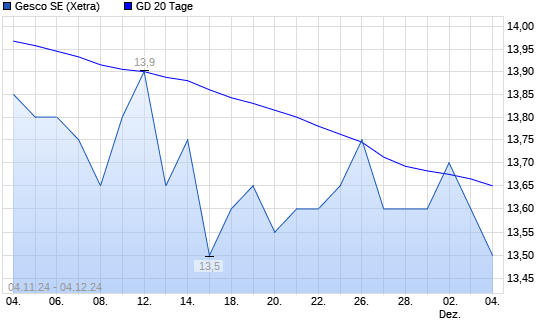 Mit dem Rücksetzer auf 13,65 EUR hat die Gesco-Aktie am 03.12.2024 die 20-Tage-Linie nach unten gekreuzt.