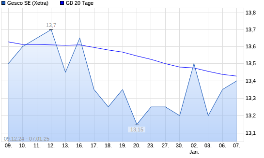 Mit dem Rücksetzer auf 13,10 EUR hat die Gesco-Aktie am 06.01.2025 die 20-Tage-Linie nach unten gekreuzt.