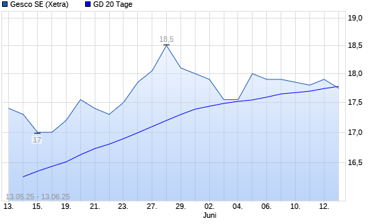 Mit dem Rücksetzer auf 17,45 EUR hat die Gesco-Aktie am 12.06.2025 die 20-Tage-Linie nach unten gekreuzt.