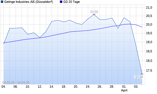 Mit dem Rücksetzer auf 19,75 EUR hat die Getinge Industries-Aktie am 03.04.2025 die 20-Tage-Linie nach unten gekreuzt.