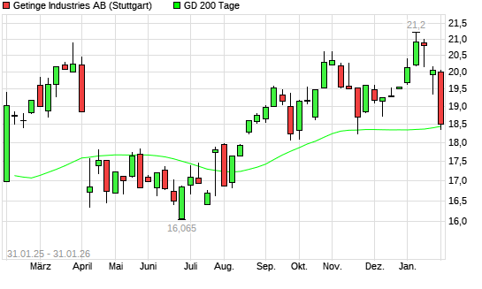 Mit dem Rücksetzer auf 18,35 EUR hat die Getinge Industries-Aktie am 30.01.2026 die 200-Tage-Linie nach unten gekreuzt.