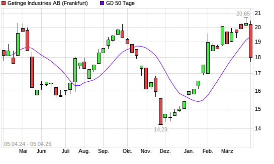 Mit dem Rücksetzer auf 17,98 EUR hat die Getinge Industries-Aktie am 04.04.2025 die 50-Tage-Linie nach unten gekreuzt.