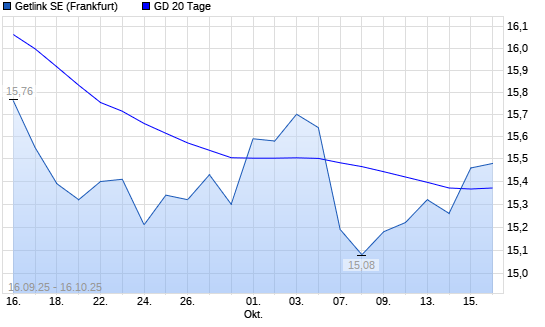 Mit dem Anstieg auf 15,46 EUR hat die Getlink-Aktie am 15.10.2025 die 20-Tage-Linie nach oben gekreuzt.