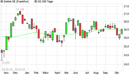 Mit dem Anstieg auf 16,04 EUR hat die Getlink-Aktie am 18.10.2024 die 200-Tage-Linie nach oben gekreuzt.