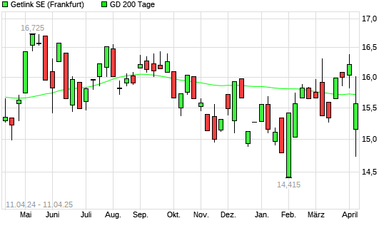 Mit dem Anstieg auf 16,01 EUR hat die Getlink-Aktie am 10.04.2025 die 200-Tage-Linie nach oben gekreuzt.