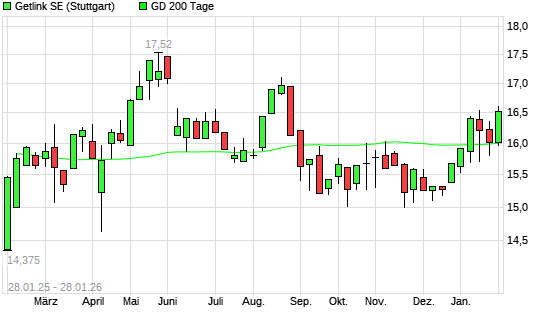 Mit dem Anstieg auf 16,03 EUR hat die Getlink-Aktie am 27.01.2026 die 200-Tage-Linie nach oben gekreuzt.