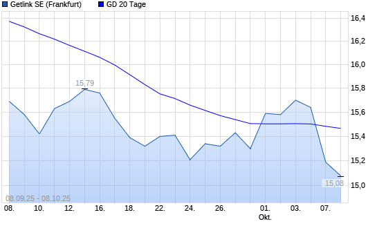 Mit dem Rücksetzer auf 15,19 EUR hat die Getlink-Aktie am 07.10.2025 die 20-Tage-Linie nach unten gekreuzt.