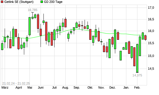 Mit dem Rücksetzer auf 15,68 EUR hat die Getlink-Aktie am 20.02.2025 die 200-Tage-Linie nach unten gekreuzt.