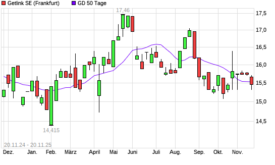 Mit dem Rücksetzer auf 15,32 EUR hat die Getlink-Aktie am 19.11.2025 die 50-Tage-Linie nach unten gekreuzt.