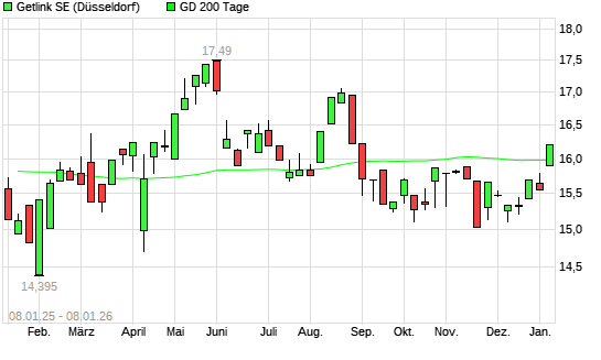 Mit dem Anstieg auf 16,02 EUR hat die Getlink-Aktie am 07.01.2026 die 200-Tage-Linie nach oben gekreuzt.Die Getlink-Aktie befand sich seit dem 03.09.2025 im langfristigen Abwärtstrend und hat ...weiterlesen