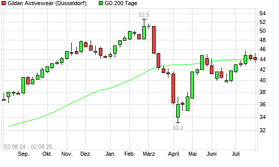 Mit dem Rücksetzer auf 43,80 EUR hat die Gildan Activewear-Aktie am 01.08.2025 die 200-Tage-Linie nach unten gekreuzt.