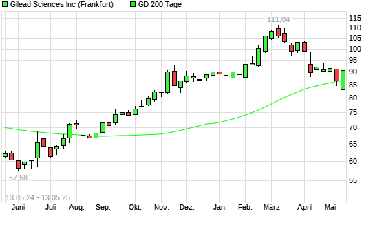 Mit dem Anstieg auf 90,99 EUR hat die Gilead Sciences-Aktie am 12.05.2025 die 200-Tage-Linie nach oben gekreuzt.