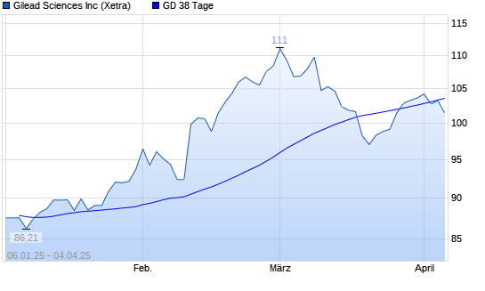 Mit dem Anstieg auf 103,08 EUR hat die Gilead Sciences-Aktie am 03.04.2025 die 38-Tage-Linie nach oben gekreuzt.