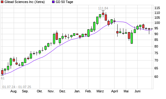 Mit dem Anstieg auf 93,63 EUR hat die Gilead Sciences-Aktie am 30.06.2025 die 50-Tage-Linie nach oben gekreuzt.