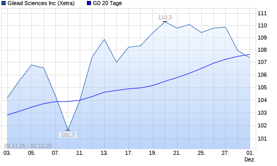 Mit dem Rücksetzer auf 107,74 EUR hat die Gilead Sciences-Aktie am 01.12.2025 die 20-Tage-Linie nach unten gekreuzt.