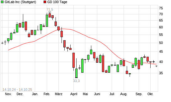 Mit dem Rücksetzer auf 38,80 EUR hat die GitLab-Aktie am 13.10.2025 die 100-Tage-Linie nach unten gekreuzt.