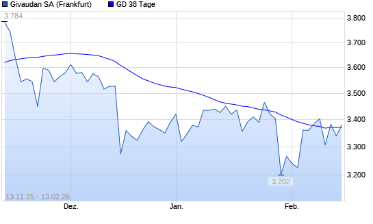 Mit dem Rücksetzer auf 3.340,00 EUR hat die Givaudan-Aktie am 12.02.2026 die 38-Tage-Linie nach unten gekreuzt.