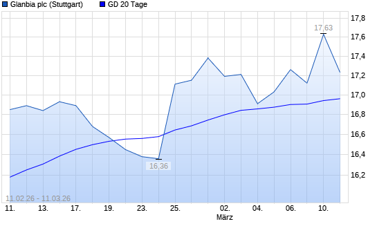 Mit dem Anstieg auf 16,54 EUR hat die Glanbia-Aktie am 10.03.2026 die 20-Tage-Linie nach oben gekreuzt.