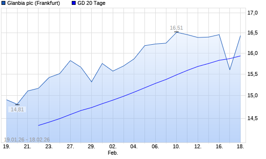 Mit dem Rücksetzer auf 15,60 EUR hat die Glanbia-Aktie am 17.02.2026 die 20-Tage-Linie nach unten gekreuzt.