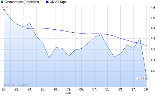 Mit dem Anstieg auf 4,30 EUR hat die Glencore-Aktie am 18.02.2025 die 20-Tage-Linie nach oben gekreuzt.