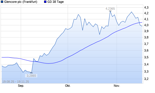 Mit dem Rücksetzer auf 4,00 EUR hat die Glencore-Aktie am 18.11.2025 die 38-Tage-Linie nach unten gekreuzt.