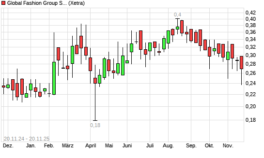 Mit dem Rücksetzer auf 0,26 EUR hat die Global Fashion Group-Aktie (ISIN LU2010095458) am 19.11.2025 ein neues 6-Monats-Tief erreicht und damit den Kurs vom 12.11.2025 eingestellt.