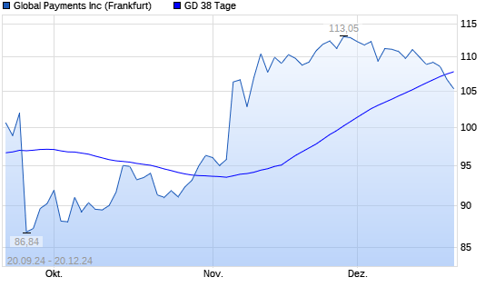 Mit dem Rücksetzer auf 106,70 EUR hat die Global Payments-Aktie am 19.12.2024 die 38-Tage-Linie nach unten gekreuzt.