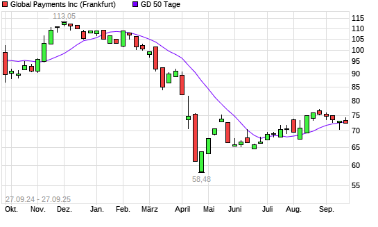 Mit dem Rücksetzer auf 72,52 EUR hat die Global Payments-Aktie am 26.09.2025 die 50-Tage-Linie nach unten gekreuzt.