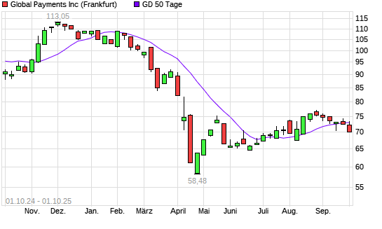 Mit dem Anstieg auf 73,26 EUR hat die Global Payments-Aktie am 30.09.2025 die 50-Tage-Linie nach oben gekreuzt.Die Global Payments-Aktie befindet sich seit dem 04.03.2025 im langfristigen Abwärtstrend ...weiterlesen