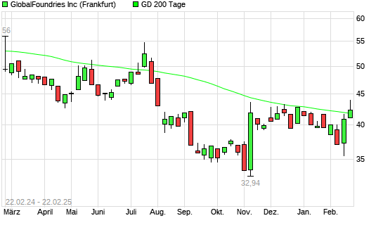 Mit dem Rücksetzer auf 40,50 EUR hat die GlobalFoundries-Aktie am 21.02.2025 die 200-Tage-Linie nach unten gekreuzt.Die GlobalFoundries-Aktie befand sich seit dem 19.02.2025 im langfristigen ...weiterlesen