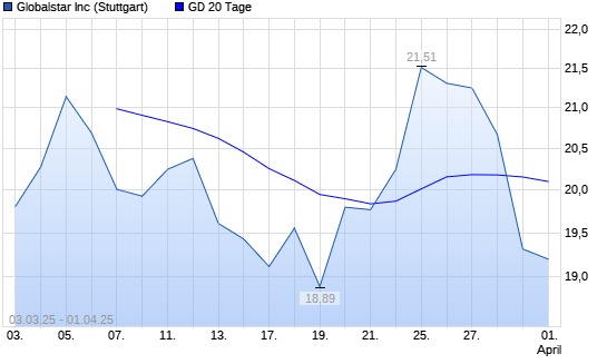 Mit dem Rücksetzer auf 19,60 EUR hat die Globalstar-Aktie am 31.03.2025 die 20-Tage-Linie nach unten gekreuzt.