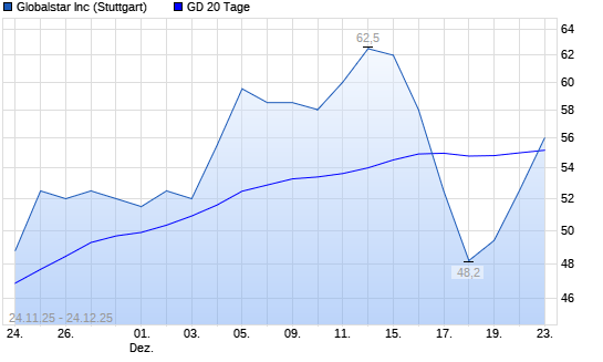 Mit dem Rücksetzer auf 53,50 EUR hat die Globalstar-Aktie am 23.12.2025 die 20-Tage-Linie nach unten gekreuzt.