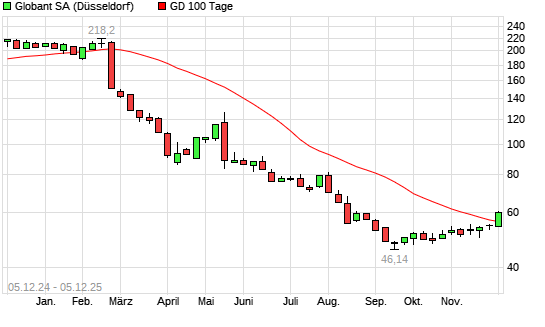 Mit dem Anstieg auf 59,40 EUR hat die Globant-Aktie am 04.12.2025 die 100-Tage-Linie nach oben gekreuzt.