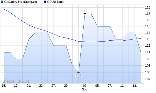 Mit dem Rücksetzer auf 111,00 EUR hat die GoDaddy-Aktie am 14.11.2025 die 20-Tage-Linie nach unten gekreuzt.