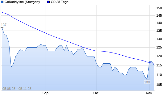 Mit dem Rücksetzer auf 115,00 EUR hat die GoDaddy-Aktie am 04.11.2025 die 38-Tage-Linie nach unten gekreuzt.