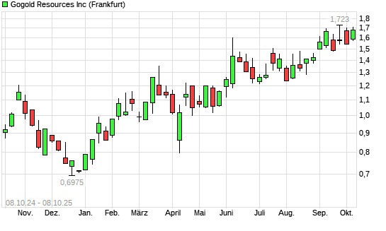 Mit dem Anstieg auf 1,68 EUR hat die GoGold Resources-Aktie (ISIN CA38045Y1025) am 07.10.2025 ein neues 12-Monats-Hoch erreicht und damit den Kurs vom 12.09.2025 eingestellt.