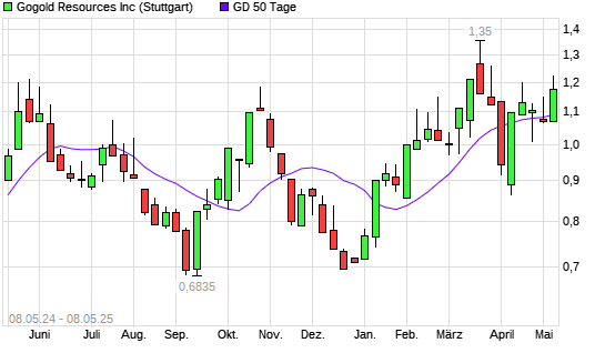 Mit dem Anstieg auf 1,16 EUR hat die GoGold Resources-Aktie am 07.05.2025 die 50-Tage-Linie nach oben gekreuzt.