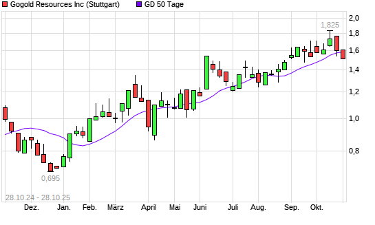 Mit dem Rücksetzer auf 1,53 EUR hat die GoGold Resources-Aktie am 27.10.2025 die 50-Tage-Linie nach unten gekreuzt.