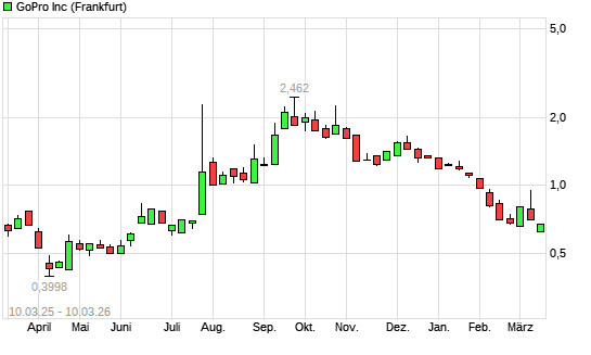 Mit dem Rücksetzer auf 0,63 EUR hat die GoPro-Aktie (ISIN US38268T1034) am 09.03.2026 ein neues 6-Monats-Tief erreicht und damit den Kurs vom 18.02.2026 eingestellt.