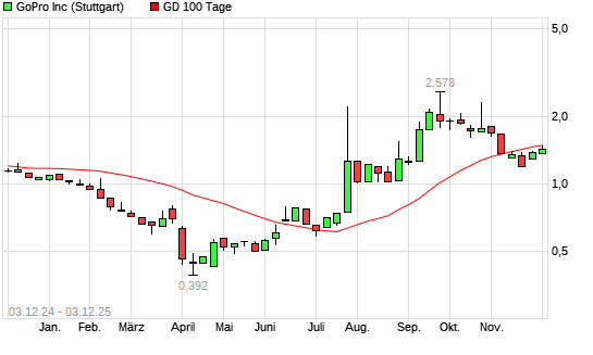 Mit dem Anstieg auf 1,53 EUR hat die GoPro-Aktie am 02.12.2025 die 100-Tage-Linie nach oben gekreuzt.