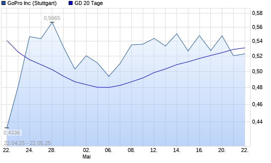 Mit dem Rücksetzer auf 0,53 EUR hat die GoPro-Aktie am 21.05.2025 die 20-Tage-Linie nach unten gekreuzt.