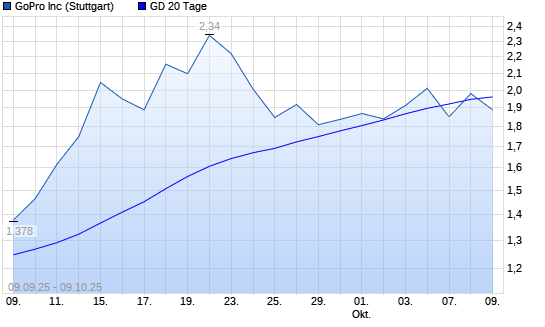 Mit dem Rücksetzer auf 1,90 EUR hat die GoPro-Aktie am 08.10.2025 die 20-Tage-Linie nach unten gekreuzt.