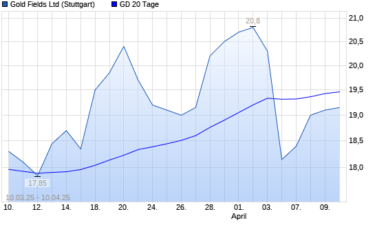 Mit dem Anstieg auf 19,55 EUR hat die Gold Fields-Aktie am 09.04.2025 die 20-Tage-Linie nach oben gekreuzt.