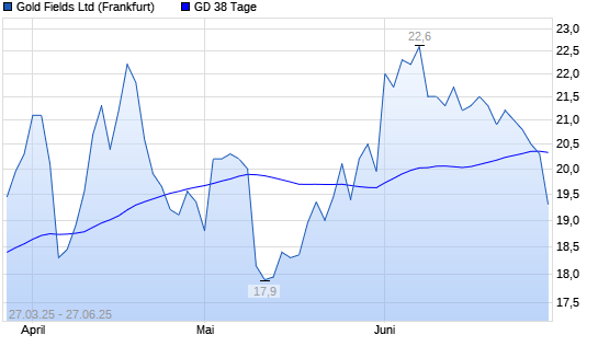 Mit dem Rücksetzer auf 20,30 EUR hat die Gold Fields-Aktie am 26.06.2025 die 38-Tage-Linie nach unten gekreuzt.