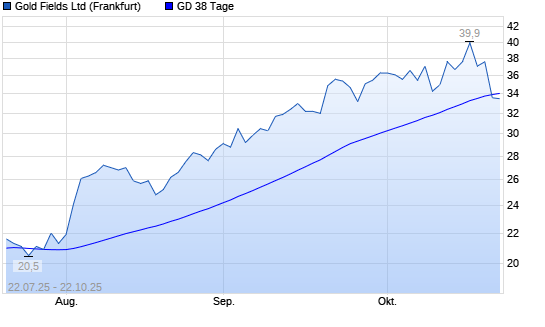 Mit dem Rücksetzer auf 33,60 EUR hat die Gold Fields-Aktie am 21.10.2025 die 38-Tage-Linie nach unten gekreuzt.